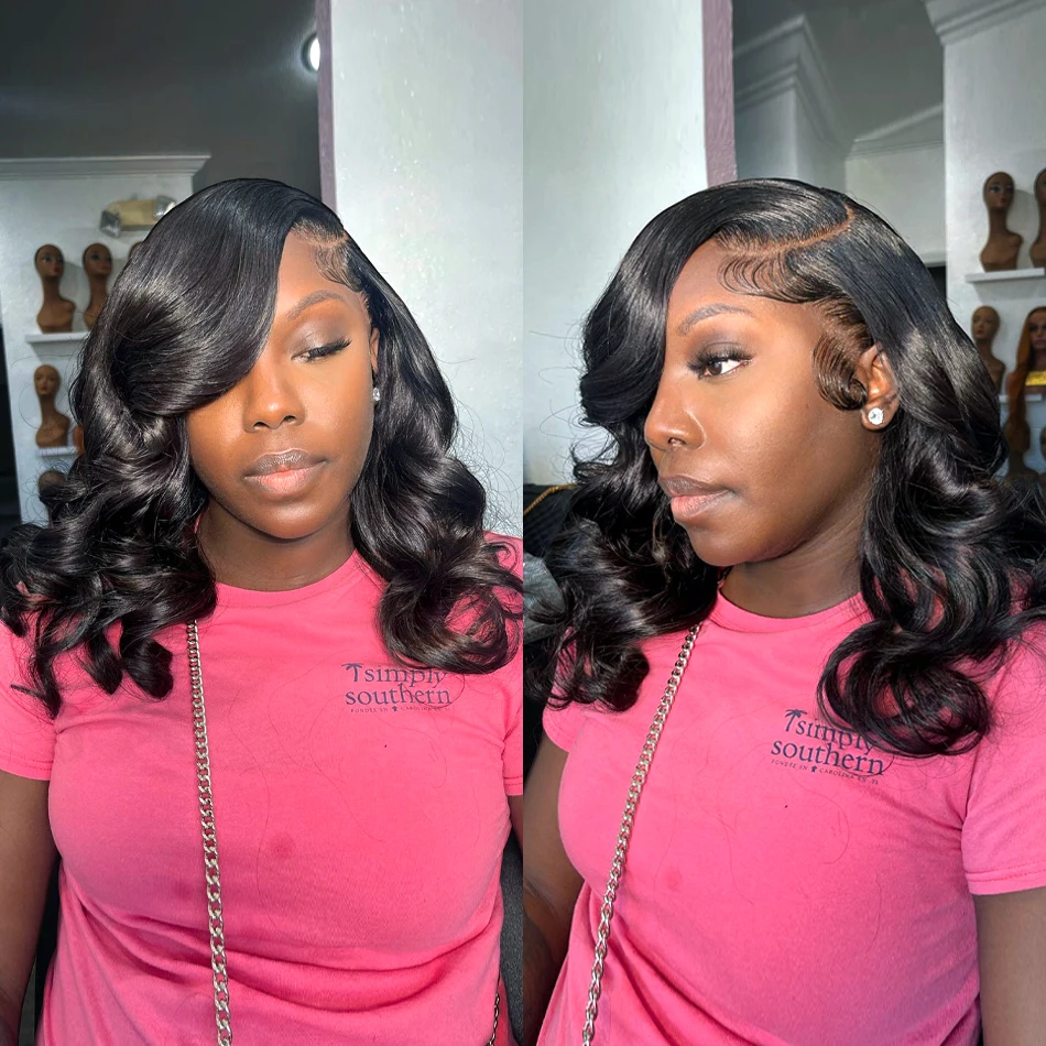 Step into effortless elegance with this stunning Comfortable & Easy to Wear Body Wave Front Lace Wig Human Hair set designed to turn heads wherever you go.