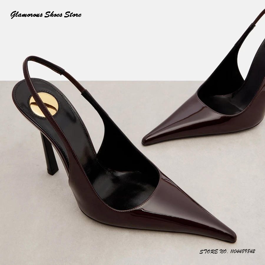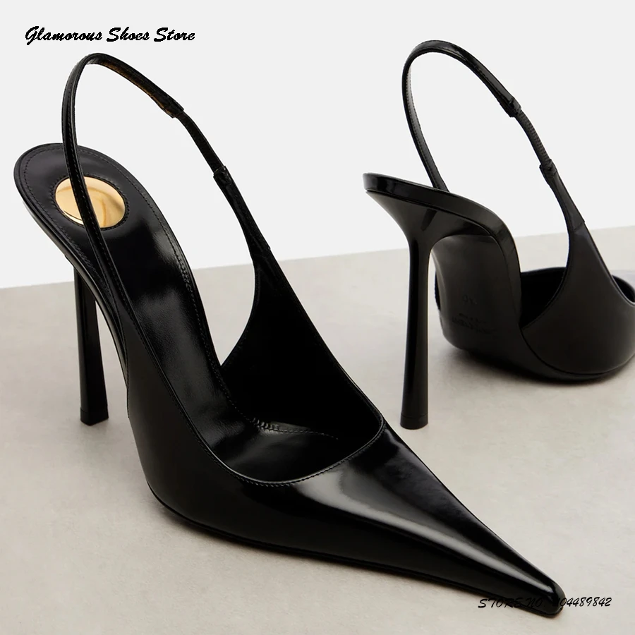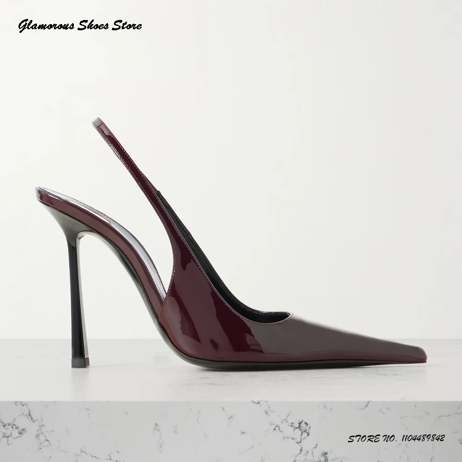 Product Name: Elegant Patent Leather Slingback Pumps Women's Pointed Toe Thin Heels Party Shoes 2025 Summer Fashion Shallow Pull On Stilettos
